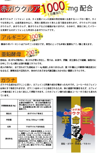 赤ガウクルア革命王はソフォンを主成分とするサプリメント。
