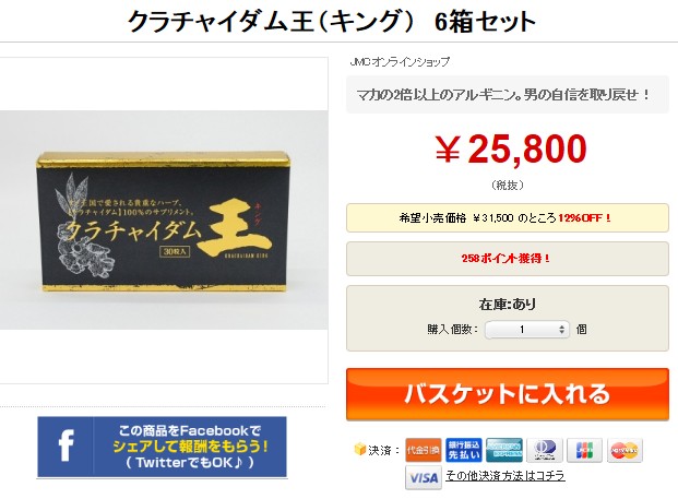 クラチャイダム王(キング) (株式会社ジャパン・メディカルケア). 口コミ 0件. クラチャイダム王(キング). サービスの詳細: クラチャイダムには「男性の力の源」であるアルギニンがマカの2倍以上含まれています。 更に、スポーツサプリメントなどで使用されている運動 ... |